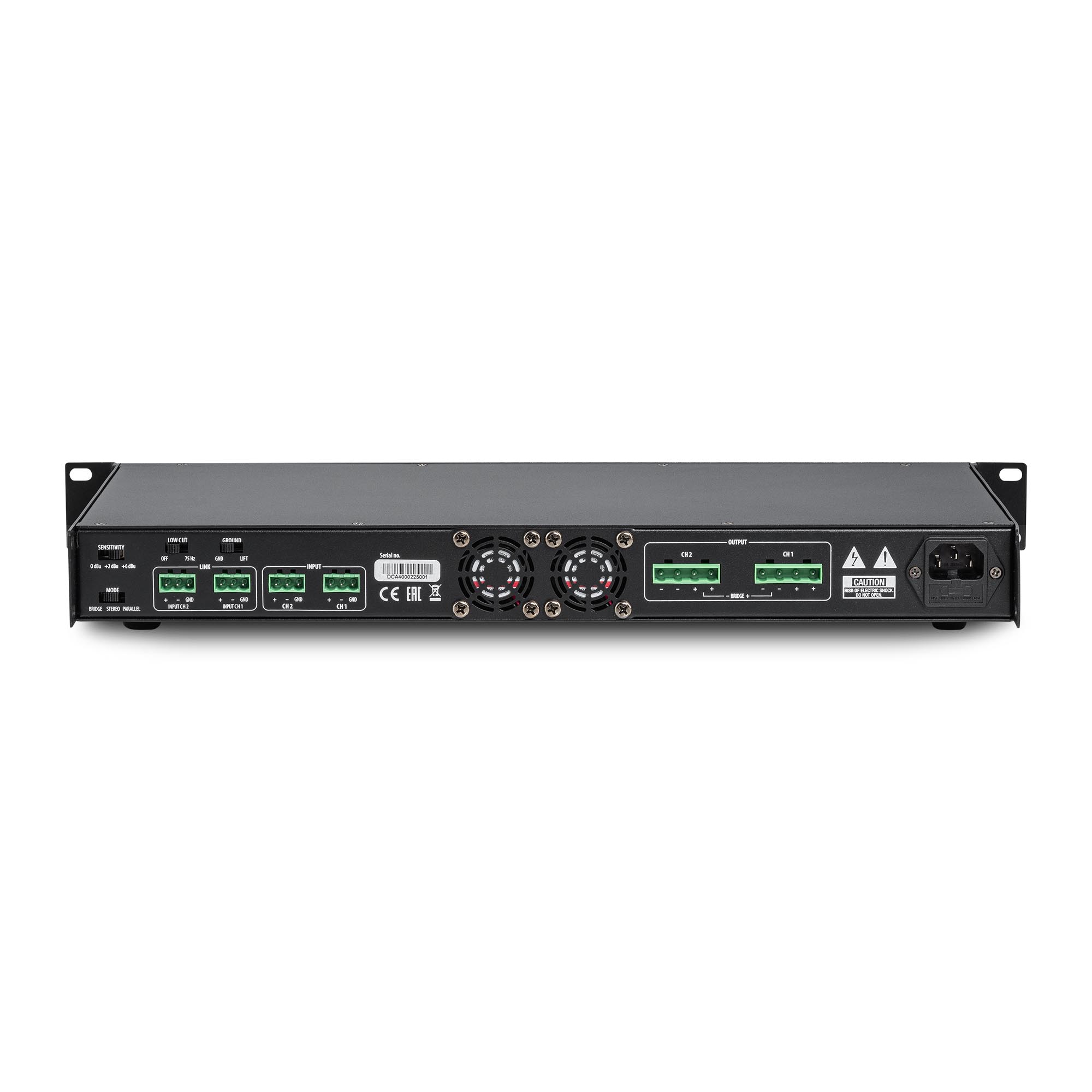 Kahe kanaliga võimendi . Võimsus: 2 x 200 W @ 4 Ω, 2 x 100 W @ 8 Ω, sagedusvahemik: 20 Hz – 20 kHz