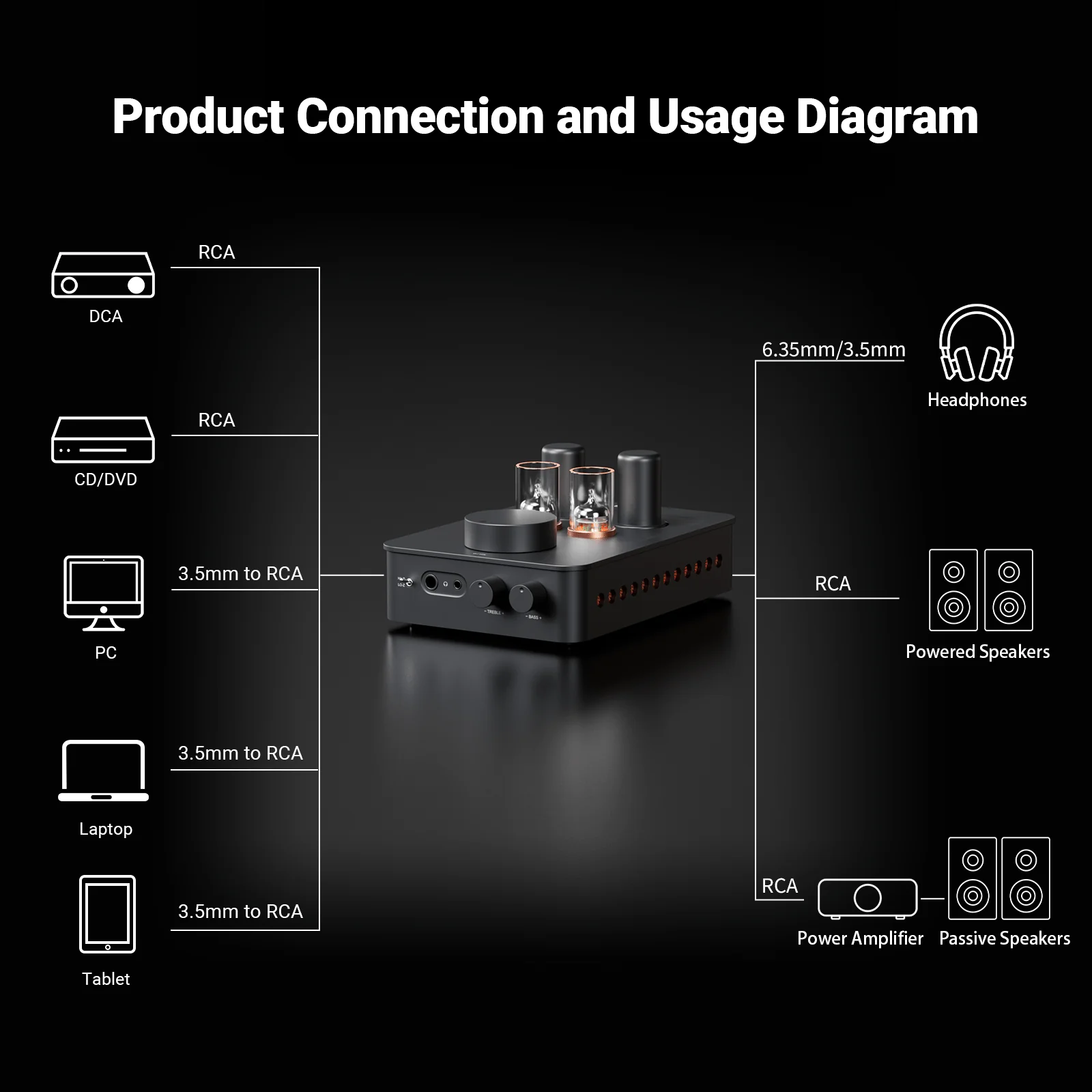 Fosi Audio lampvõimendi ja eelvõimendi kõrvaklapidele. Bass ja Treble EQ, sobivad 16–300Ω takistusega kõrvaklappid