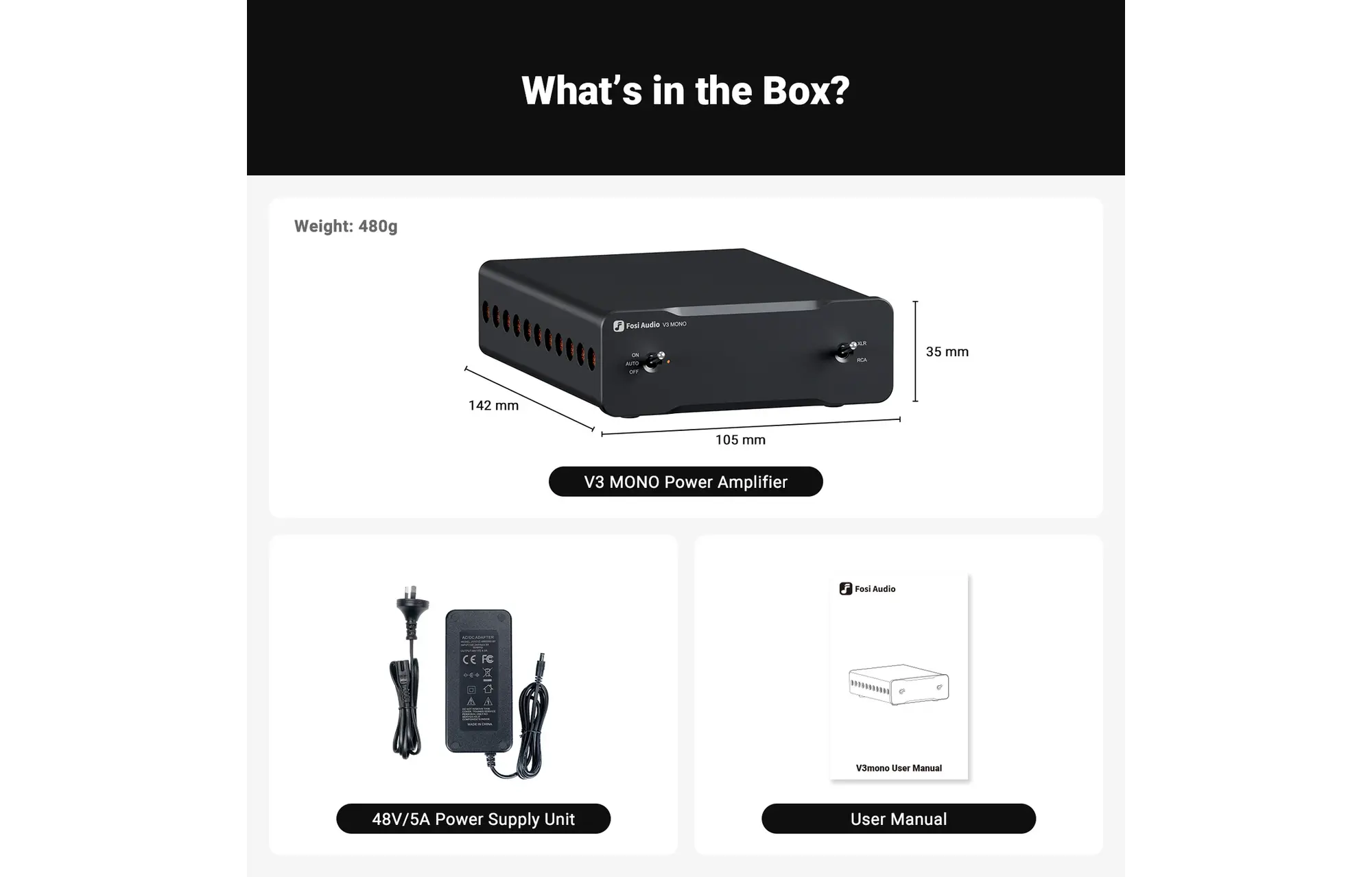 Fosi Audio 1-kanaliga võimendi. Võimsus: 240W (4Ω), takistus: 2-8Ω, sagedusvahemik: 10Hz-30kHz