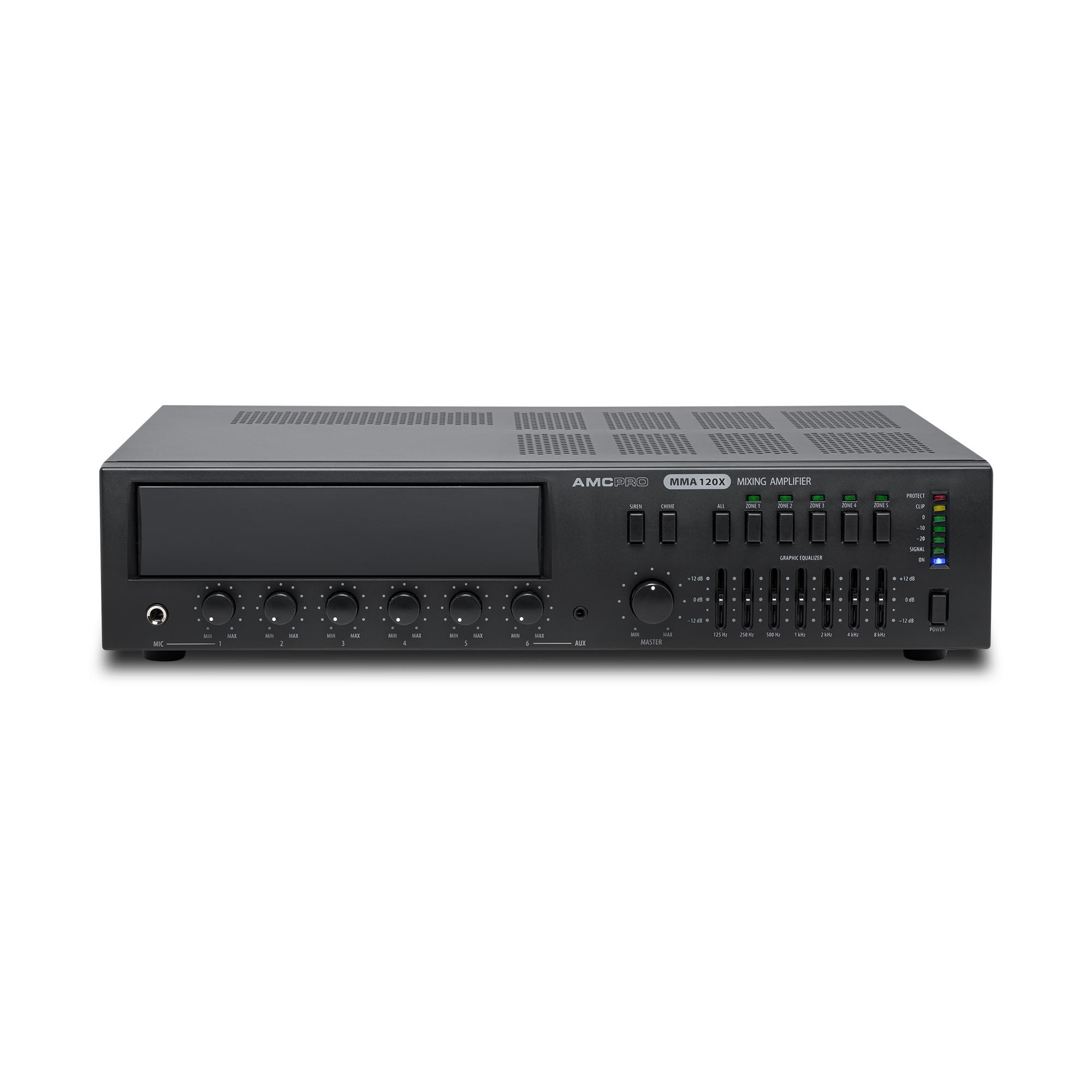 Viie tsoontega 100V võimendi. Võimsus: 120 W @ 4 Ω, 120 W @ 100 V, sagedusvahemik: 80 Hz — 15 kHz