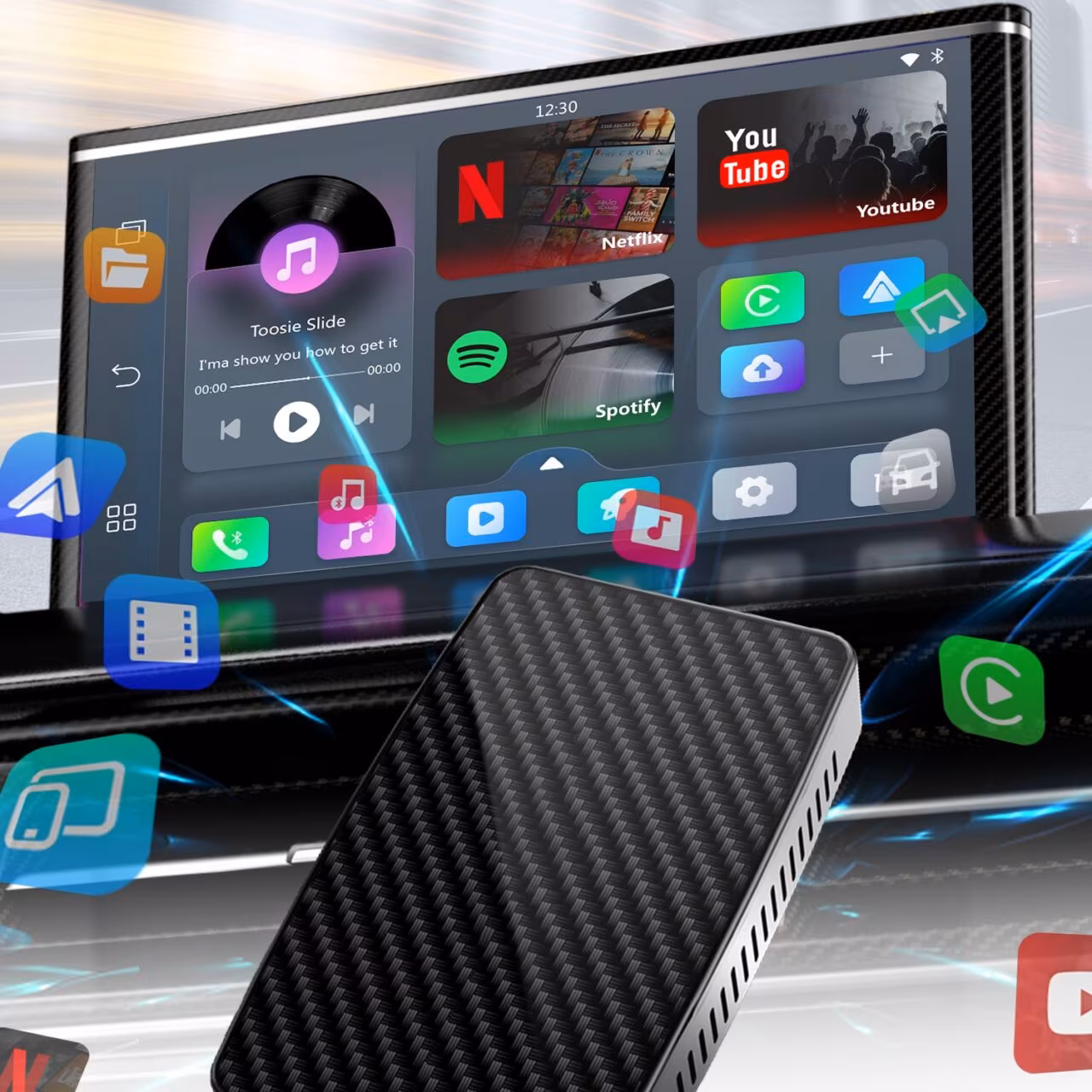 Android box on USB teel ühilduv kompaktne seade, mille ühendamisel auto arvab, et tegemist on telefoniga kuid tegelikult on see täiesti iseseisev Android süsteem, mis muudab auto ekraani tõeliseks meelelahutuskeskuseks.
