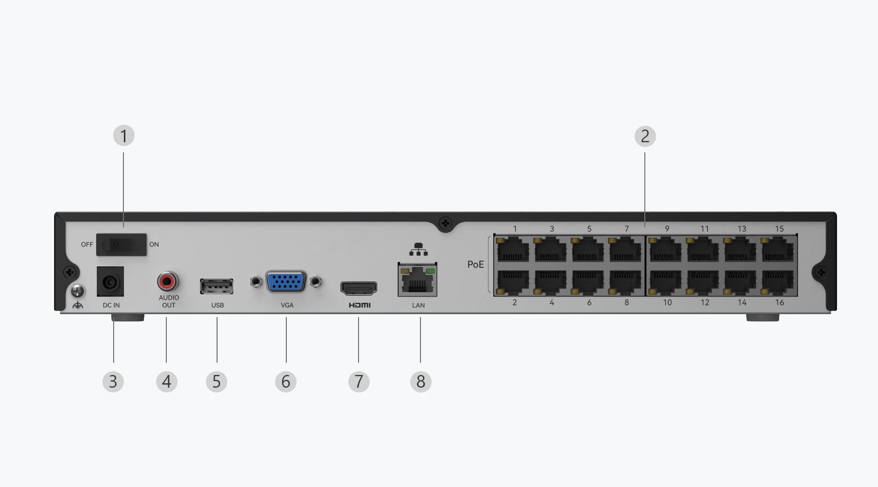 16 PoE kanalit, kuni 12MP, VGA, HDMI, 2 x SATA sisseehitatud, 4TB HDD, kõvaketad kuni 12TB SATA HDD