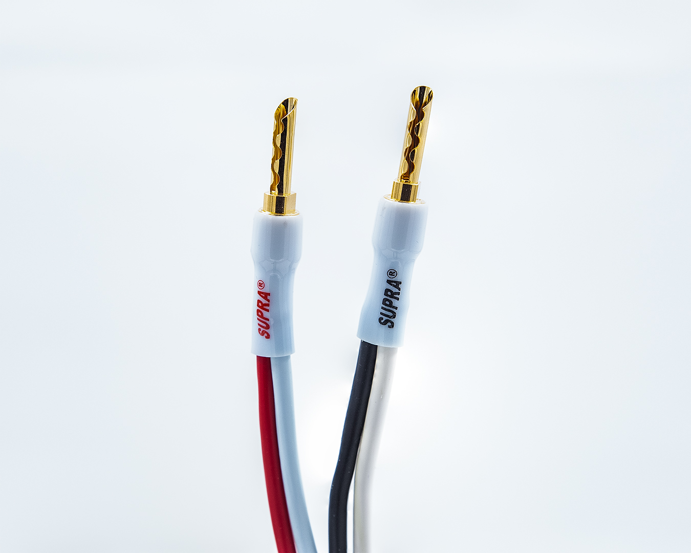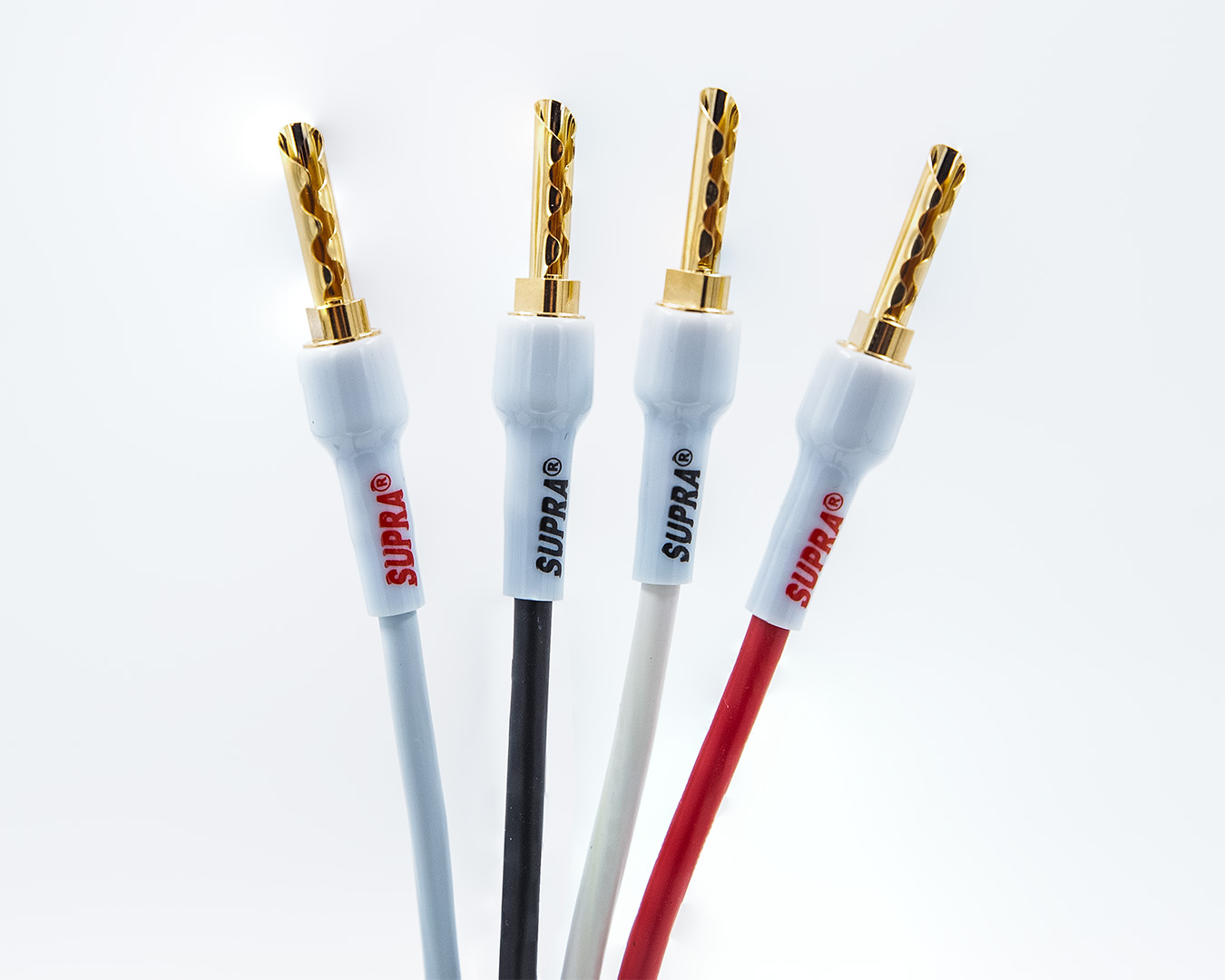 4×4.0 mm² (4 x 11 AWG) tinatatud 5N vasest Hi-Fi keerdus kiududega valmis otsikutega Bi-Wire kõlarikaabel, kuumusele ja ajale vastupidavas PVC rüüs